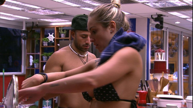 Jéssica arruma a louça após o almoço e Kaysar come arroz doce. Eles combinam de lavar tudo depois e a sister elogia: "Pra mim, você é o número 1".